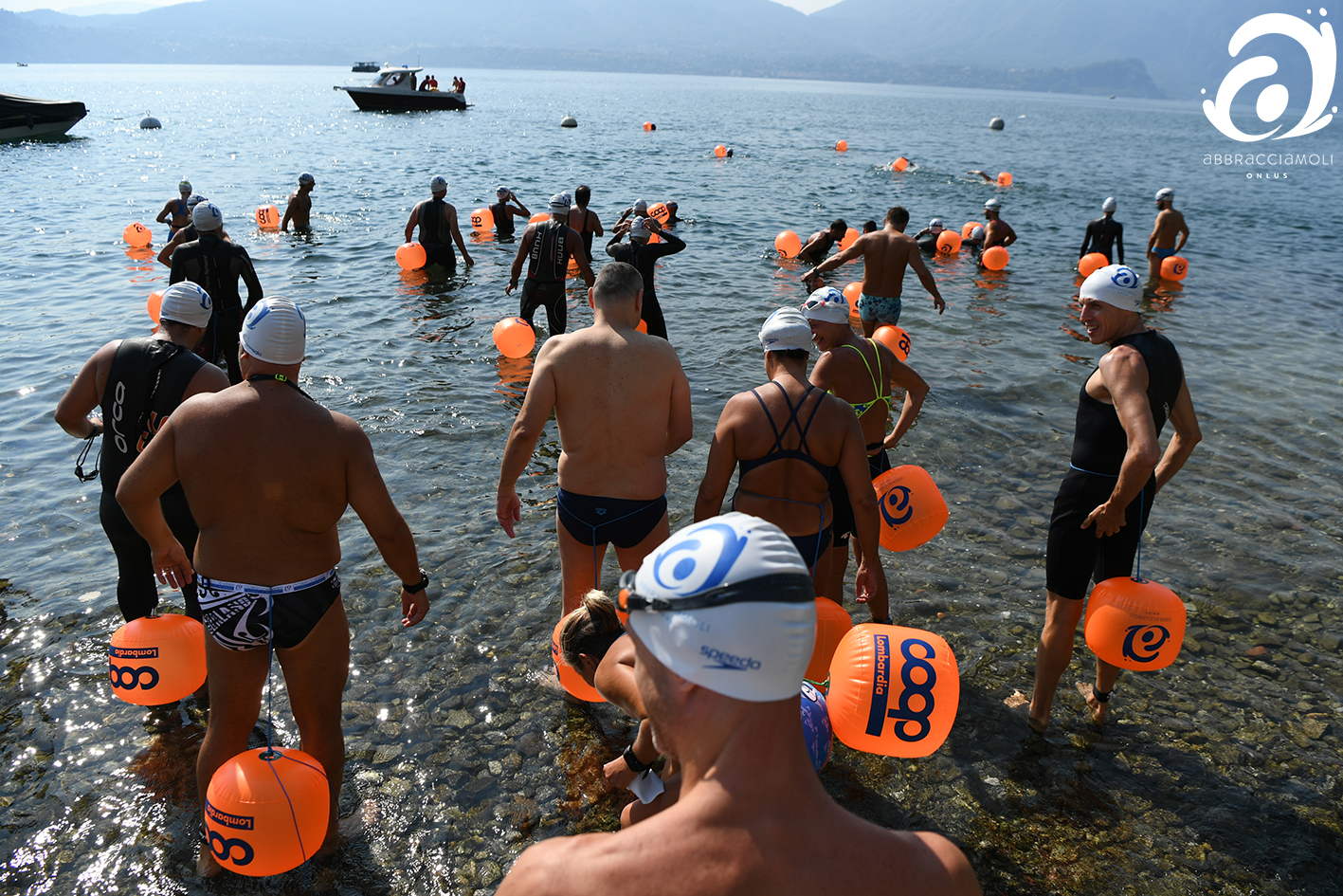 Si parte, il gruppo allunga e rimaniamo in pochi, ad un certo punto ci troviamo in due e ci facciamo compagnia, la corrente mi fa correggere la rotta di volta in volta fino a quando a meta' lago la corrente sparisce per inverte la direzione dopo pochi metri, tenendo il mio passo tranquillo e costante continuo correggendo la rotta fino a che comincio a vedere i dettagli sulla riva di Porto Valtravaglia, dopo poco una moto d'acqua della polizia mi affianca e mi fa recuperare da un gommone della croce rossa, la gara e' finita dopo 1 ora e 58 minuti perche il traffico nautico deve riprendere e non possono garantire la sicurezza in acqua.